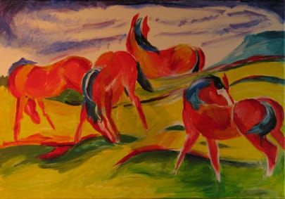 • dem Ölgemälde „Weidende Pferde III“ (1910, 90/60cm) von Franz Marc nachempfunden